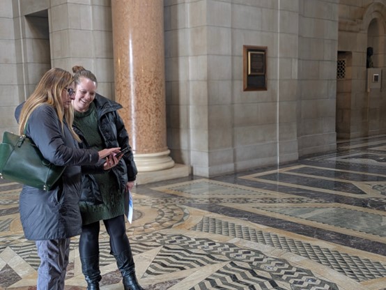 Pictured: Suzanne Schneider (left) and Raegan Brown (right) advocated for LB304 at the State Capitol Building on December 4, 2025.